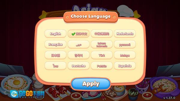 进入游戏后,首先要做的是选择游戏语言,选好简体中文后点击Apply按钮就可以了。