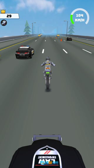 双视角系统支持自由切换:第一人称视角能还原头盔雾气与速度线特效,第三人称视角则可调节镜头距离,且在高速状态下会通过动态模糊效果增强沉浸感。
