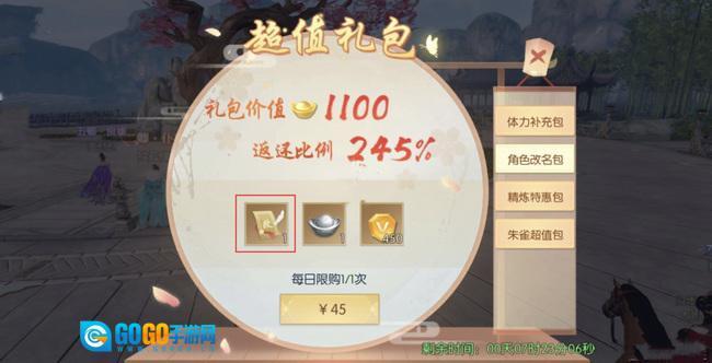 2、购买限时超级礼包后,系统会赠送一张改名卡,使用该改名卡即可完成改名操作。