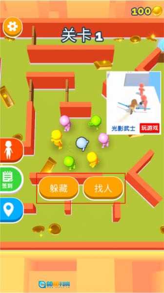 在躲藏的过程中,要主动去收集场景里的金币和金条,同时获取那些发光的道具来提升自身的隐蔽能力。