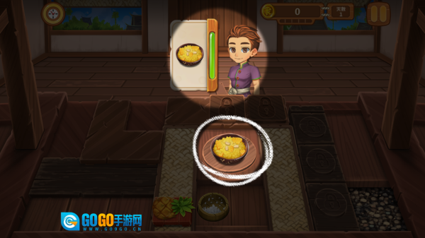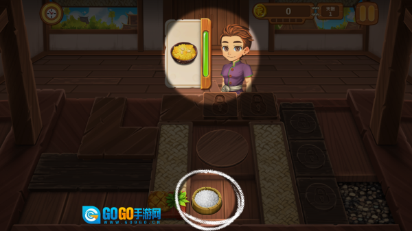 3、点击食材开展制作,待制作完成后点击已完成的食物,就能把食物递送给顾客。