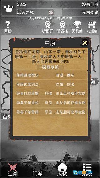 目前玩家在当前场景(比如中原地图)只有两种选择:探索或修炼,二者只能选其一,选了一个另一个就会暂停。先进行修炼,等战力达到200左右时,差不多就到大会举办的时间了,届时可以参加大会。虽然大会第一名有一千九百多战力,但他肯定会输。新年奖品是必得的,获得后会自动使用并增加你的道具。之后你可以在场景里随意逛逛,然后去打劫——通常打劫成功能得到非常多的物品。