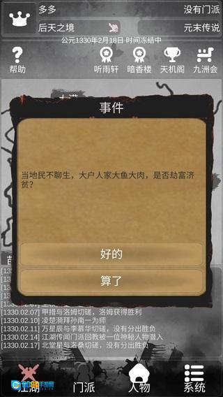 游戏里的玩法灵活性挺强,但前期玩家容易“送人头”——比如探索时拿到银子和对应资源,还有拜师这类任务不少;要是战力不够,出去打劫失败率很高,拜访别人也没人搭理,想送礼的各类道具还得靠打劫或交易获取。
