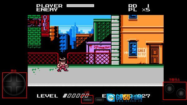 投技操作:原地按B键可发动攻击(最多连续攻击三次),若同时按下方向键与B键,则会将对手投出。
