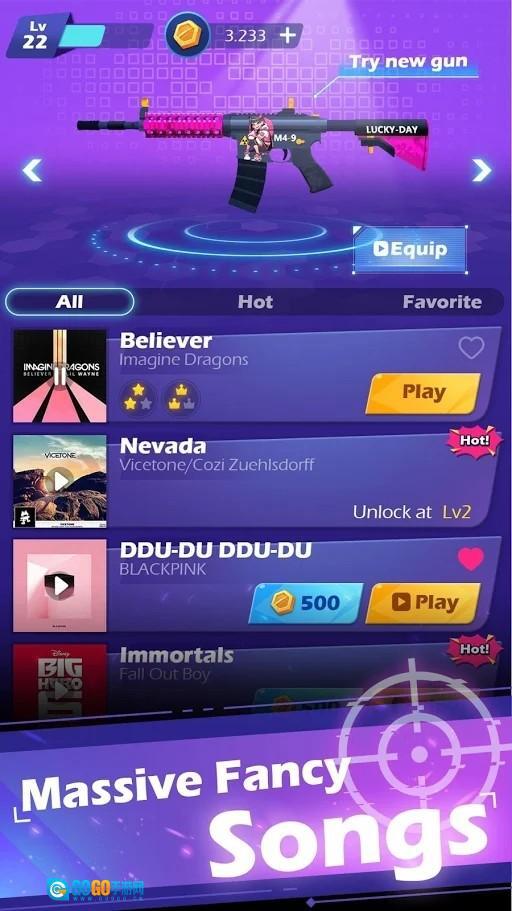 游戏中的关卡众多,而且玩家要充分的根据音乐的节奏不断的进行射击,你的节奏要把握得比较好,只有这样才能顺利的通过,游戏中拥有海量的歌曲可供玩家选择,而且每一首歌曲都拥有自己的节奏,这些都能算是一个单独的关卡。