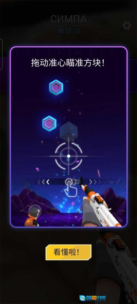 1、游戏的玩法非常简单,就是拖动准心瞄准方块进行射击,了解了之后就开始正式比赛。