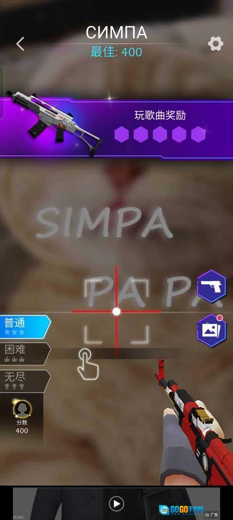 7、然后从普通、困难、无尽模式等选其一,开始跟着音乐节奏来射击吧!