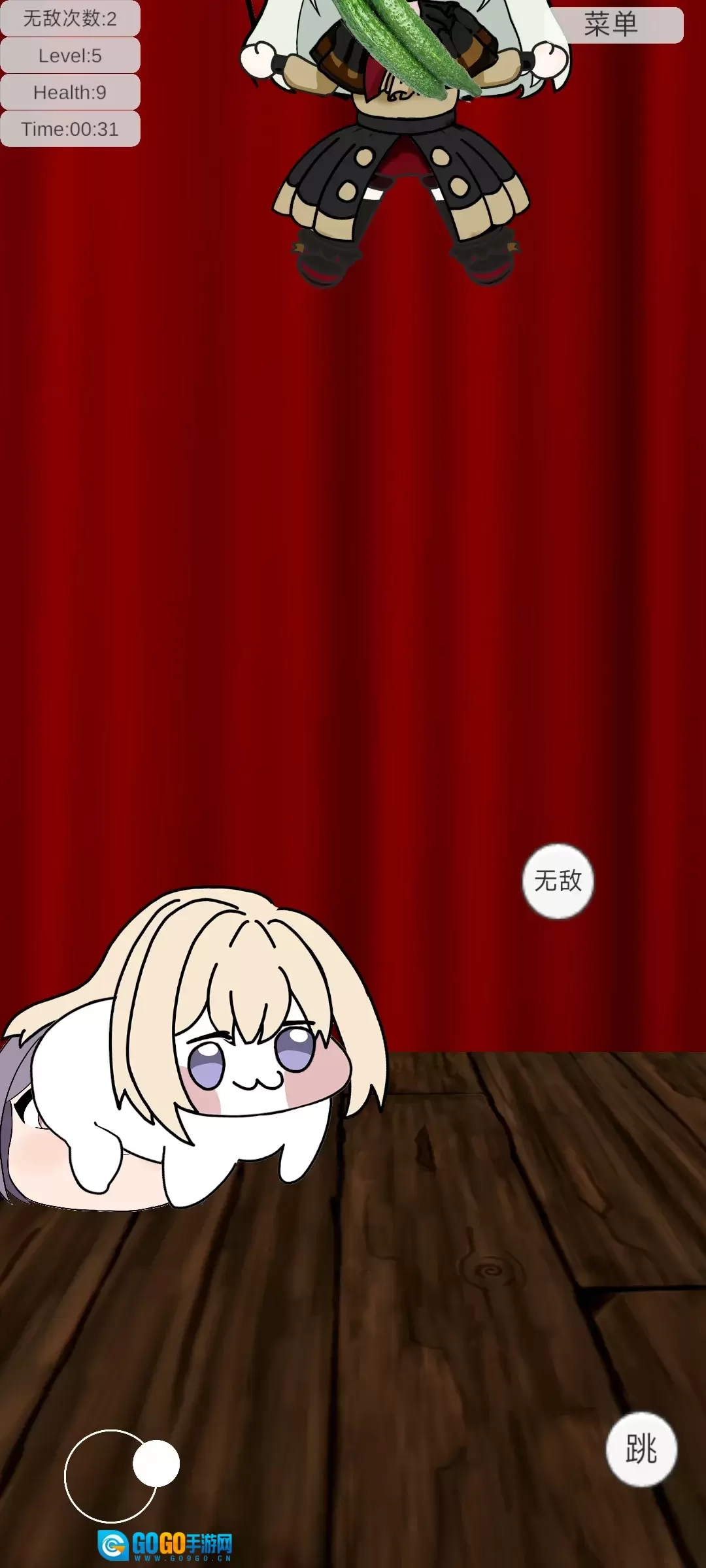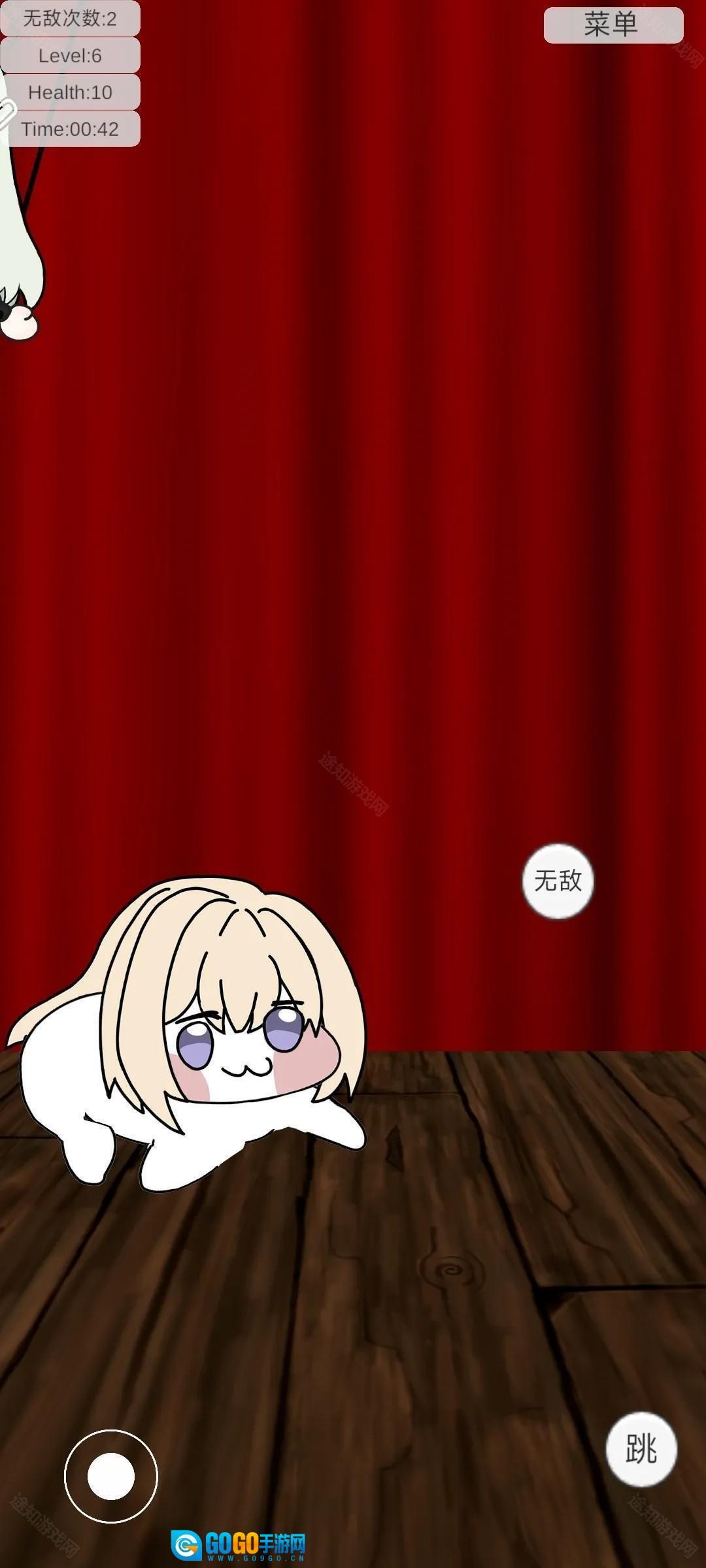 2、左边轮盘移动角色,右边是跳跃和无敌键