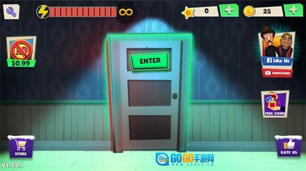 1、首先我们进入惊险的强盗游戏,点击中间的按钮开始游戏;