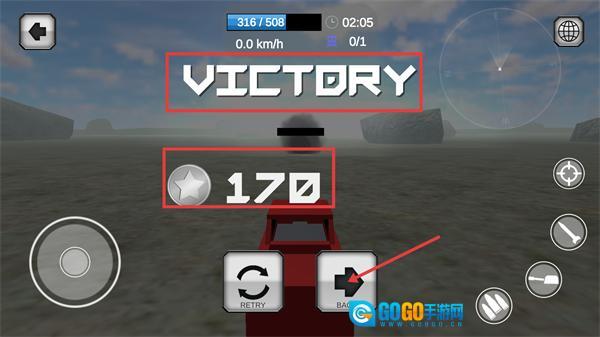 4、战斗获胜后会出现【VICTORY】的提示,能得到【170】颗星星的奖励,之后可以选择【RETRY】重新游玩,或者点击【BACK】回到之前的界面。
