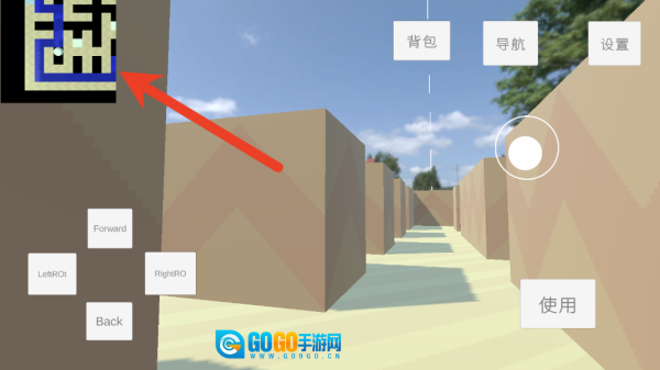 2、通过虚拟摇杆操控角色移动,滑动屏幕来调整视角,留意游戏界面左上角的关卡小地图。点击顶部的导航按钮后,小地图上会显示绿色路线,以此标记出口方向或是隐藏的捷径。