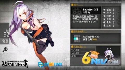 6. Spectre M4(2星):属性较为均衡,是适合新手的选择,可作为应对前期BOSS时的前排。