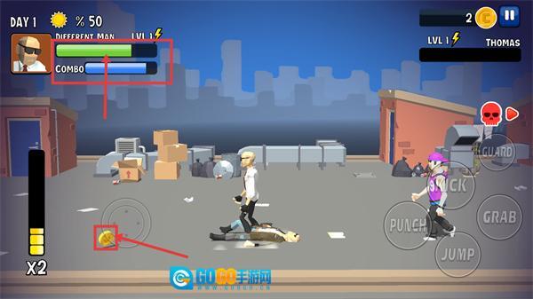 3、战斗时要留意【Different-Man】的血量和【COMBO】条,另外还要收集金币,积累资源以便后续提升使用。