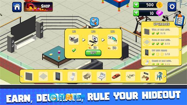 3、新增“藏身之处(HIDEOUT)”养成系统,玩家能通过战斗获取的硬币购买升级道具,打造属于自己的专属基地,为格斗冒险增添更多养成乐趣。
