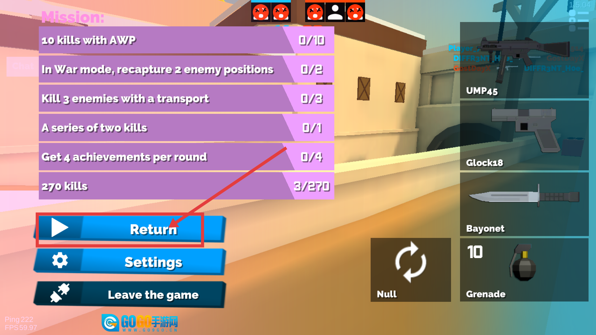 4、战斗结束后,点击【Return】回到主界面,就能查看任务进度(例如【270-kills-3/270】),以便规划接下来的战斗策略。