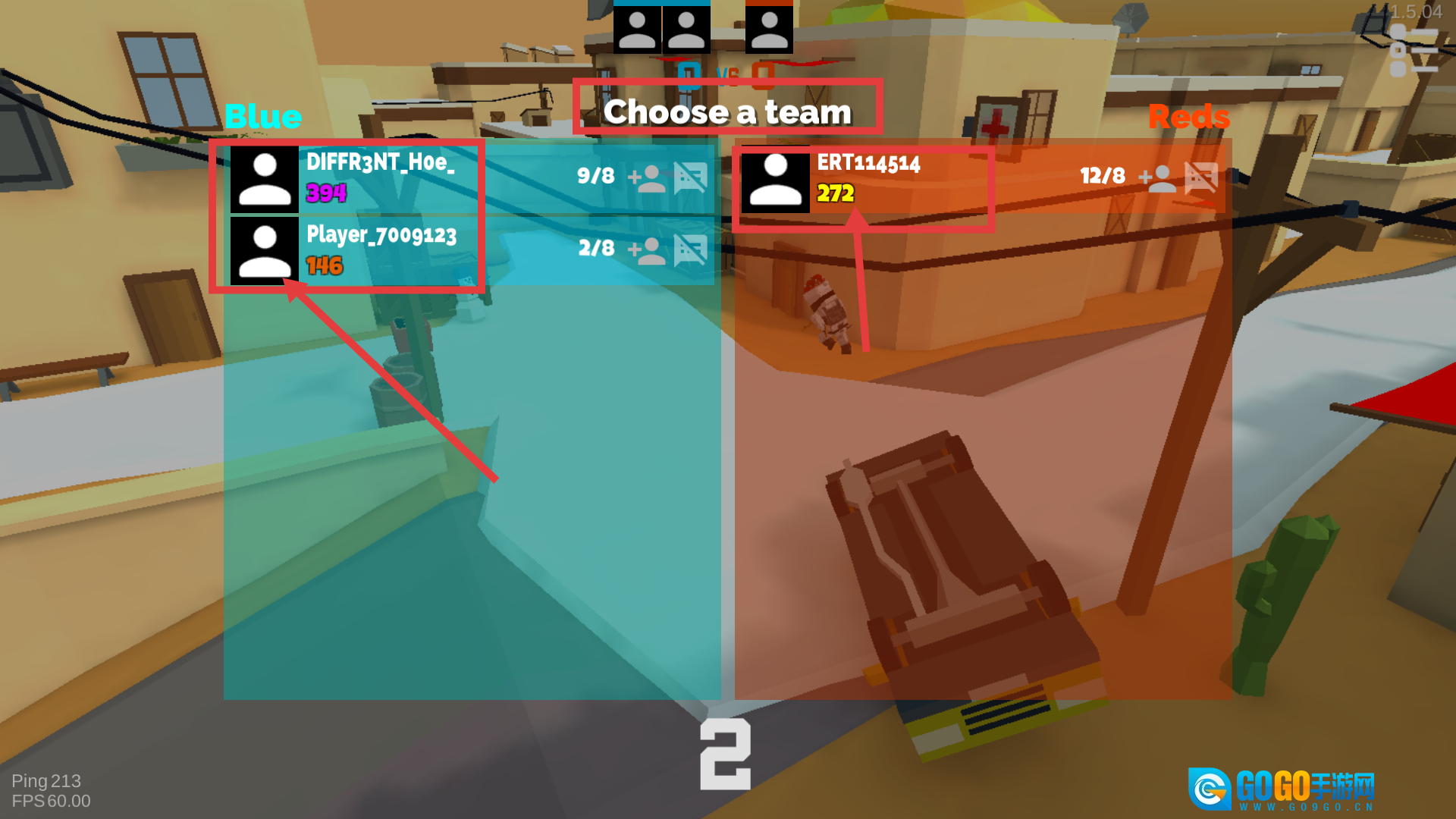 2、进入【Choose-a-team】界面后,选择加入蓝队或红队,建议优先选择人数较多的队伍,以此开启团队竞技模式。