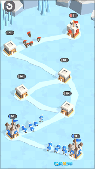 3、简化的资源获取与升级逻辑,占领敌方城堡即可积累金币,定向强化自身城堡防御或解锁更强士兵,养成路径清晰无冗余。