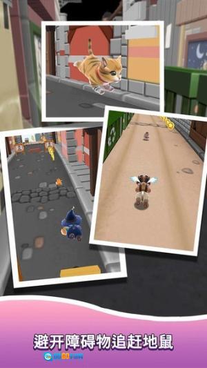 3、收集道具与追捕:在跑酷过程中主动收集金币、食物等道具,同时留意逃跑的老鼠,及时调整方向进行追捕,以此获取额外奖励。