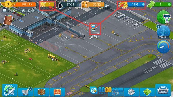 3、点击带有金币图标的区域,收集【1295】枚金币,与此同时留意星级进度,积攒资金以助力机场发展。