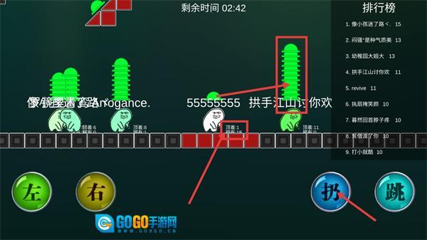 2、遇到其他选手,通过下方拥有的绿色帽子数量,点击【扔】强制给予其他人。