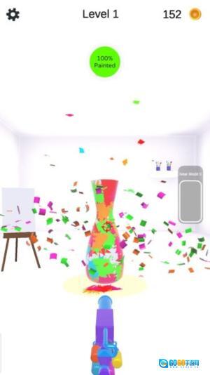 1、射击玩法解压:以第一人称视角操控枪支发射彩球,击碎圆柱形建筑,每完成一关任务都能收获满满成就感,适合用于减压放松的场景。