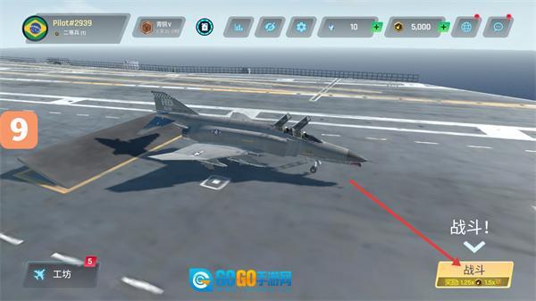 1、点击右下角的【战斗】按钮,进入战斗模式后,借助航母的起飞优势开启空战任务,以此获取【1.25倍奖励】和经验。