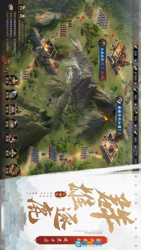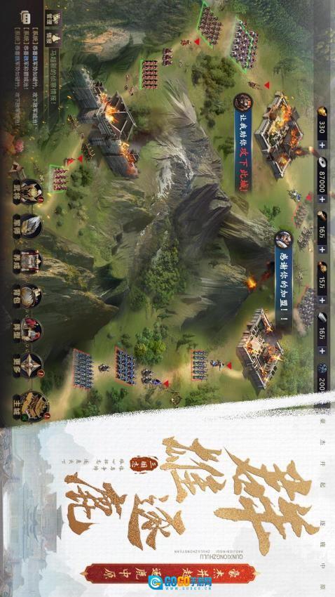 万人同场竞技,各路英雄逐鹿天下,攻城拔寨、抢占关隘,超大规模的国战一触即发,以智谋决胜群雄,彰显谁才是真正的谋略之王。