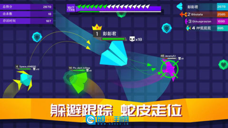 安全区逐步收缩,战斗愈发激烈,灵活走位闪转腾挪,全程热血嗨不停,导弹更支持自动锁定攻击