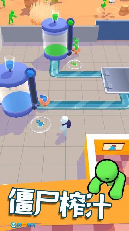 僵尸病毒席卷全球,人类的生存陷入空前危机,食物与水资源极度匮乏。就在末日降临的这一天,你需要经营一家特殊的僵尸果汁店——没错,这里所有的汁液都取材于僵尸!看着那些僵尸摇摇晃晃地爬来,再用独特的方式把它们榨成新鲜果汁,这过程简直太刺激了!