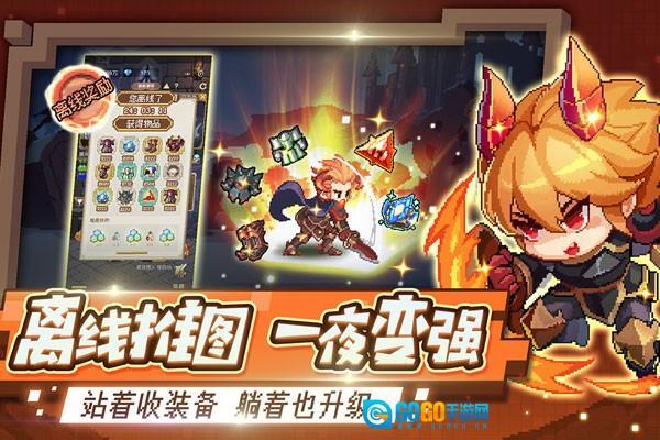 1、创新放置类游戏。玩家化身英雄角色,通过搭配对应的装备、技能、效果、精灵与事件,一路挑战无限天梯关卡!