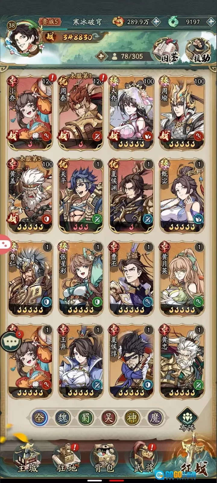4,大佬:华佗,吕布,神关羽,步练师,张春华