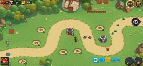 玩这款游戏时,要留意右上角的三个图标:第一个爱心图标显示的是敌人能通过路径抵达终点的剩余数量;第二个是敌人的波次标识,像“2/4”就表示已经经历了两波敌人,接下来还有两波会出现;第三个是金币图标,这些金币仅限本局游戏内使用,可用于购买防御塔以及对其进行升级。站在草坪区域的英雄拥有自由移动的能力,既能配合防御塔一同攻击敌人,也能去攻击那些防御塔射程无法覆盖到的位置。