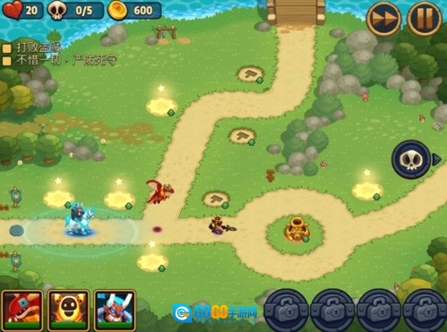 (小提示:进入战斗后,你会留意到部分塔位带有祝福效果,在这些塔位上建造的塔会拥有更强的能力哦!)