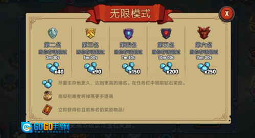 3.无限模式 在无限模式的玩法里,系统会依据玩家的生存时长,发放对应的排名宝石奖励。