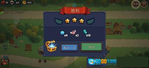 完成一关后,你会回到主界面,就像下面这张图显示的那样。玩到第五关时,你能解锁一个新英雄。另外,在主界面上你还能找到第三张图,点击“升级”按钮可以提升塔的等级。升级塔需要消耗星星,这些星星是你通过每一关后获得的最终奖励,每一关最多能拿到三颗星。