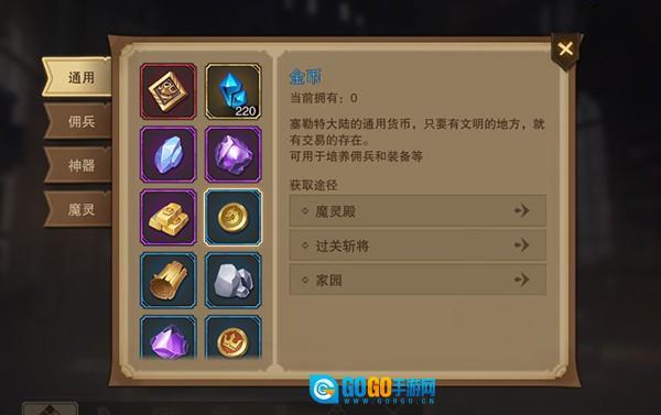 4、金币十分关键,后续可用于神器升级,获取途径包括魔灵殿、家园、过关斩将等玩法活动。