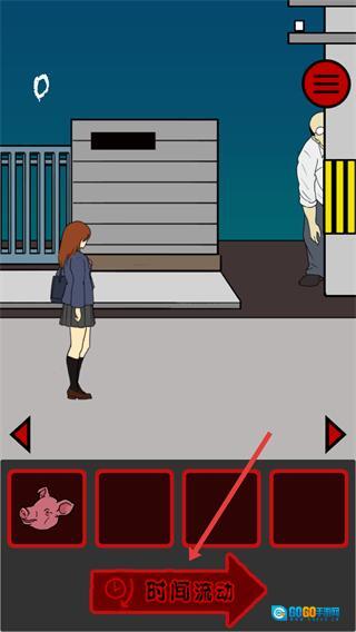 1、进入关卡后,点击【时间流动】按钮来推动剧情发展,与此同时留意场景里的【角色-可疑人物】,并提前准备好用于互动的道具。