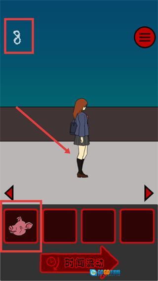 2、留意左上角的【数字8】提示,把下方槽位里的【猪头道具】拖拽到地面上。