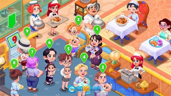 3、把准备好的餐品送到【顾客桌位】,完成订单交付并获得相应的金币收益。