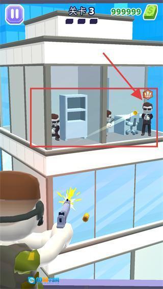2、留意场景中的目标(例如办公室内的敌人),对准目标所在区域实施射击。