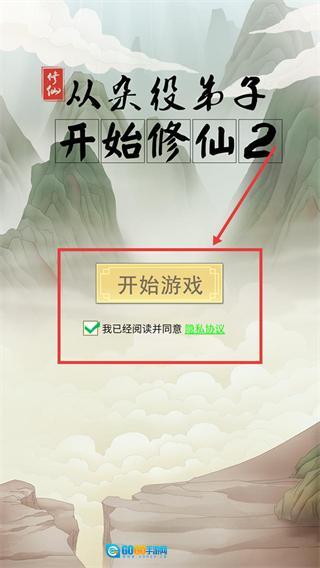 1、进入游戏时,要先勾选【我已经阅读并同意】和【隐私协议】,接着点击【开始游戏】,就能正式开启修仙之旅了。
