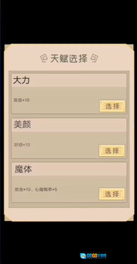 2、接着玩家可以进入游戏界面选择自己的天赋,还能通过观看广告来获取绝世天赋。