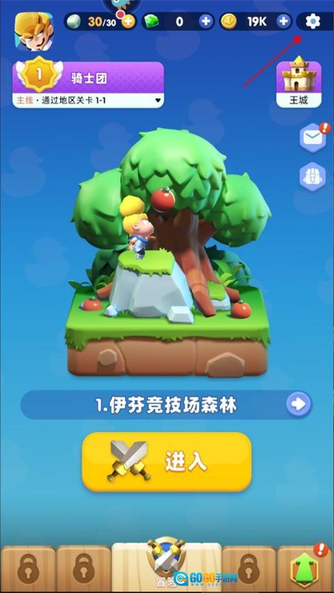 1、进入游戏后,点击右上角的设置按钮。