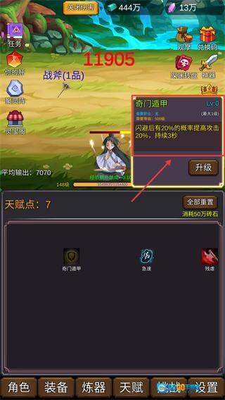 4、在天赋系统里,建议优先升级【奇门遁甲】这一天赋,它所具备的闪避后提升攻击的效果,能够明显增强角色的战斗能力。