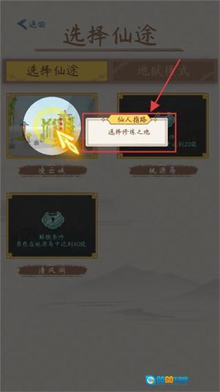 3、进入仙途选择界面后,挑选【凌云峡】或【桃源岛】这类修炼场所,再依据提示一步步推进修仙的进程。