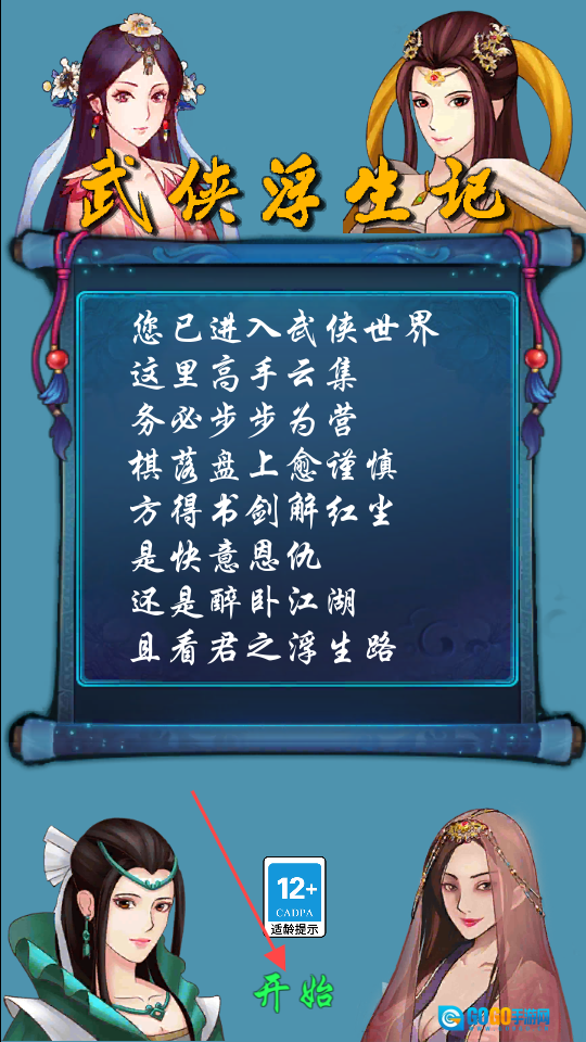 2、在剧情界面浏览武侠世界的相关介绍后,点击界面下方的【开始】按钮,即可开启游戏之旅。