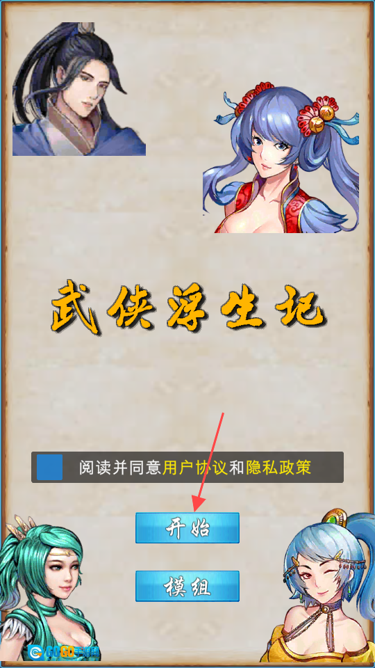 1、请先勾选【阅读并同意用户协议和隐私政策】,再点击【开始】按钮,即可进入游戏的初始流程。