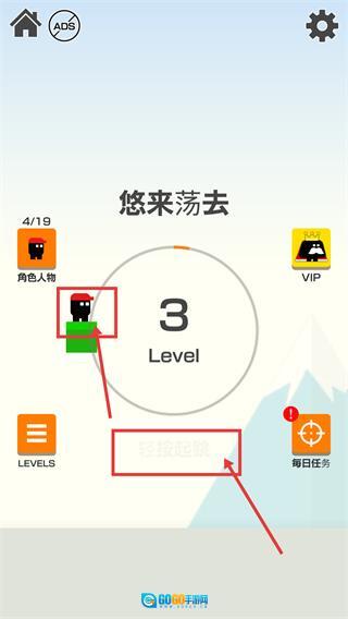 1、看到【悠来荡去】的【Level-3】界面后,挑选红色框出的角色,点击【开始起跳】按钮,即可进入该关卡的摆动挑战环节。