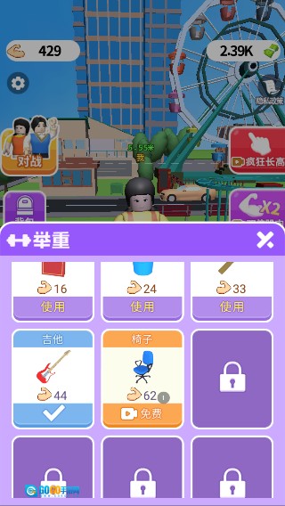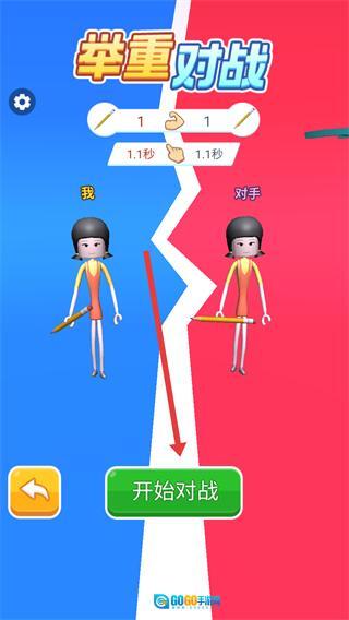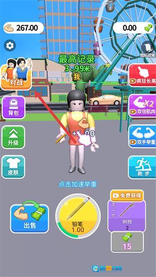 3、在对战过程中,点击底部的举重道具,能够快速积累肌肉数值,从而提升自身的对战进度。