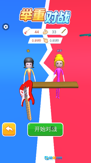 2、在举重对战页面找到并点击“开始对战”按钮,系统将自动匹配对手,随后进入实时对战环节。